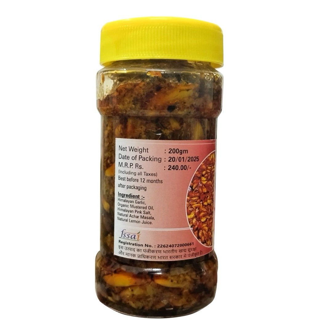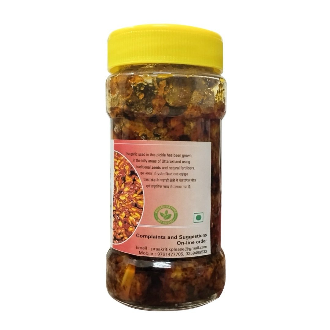 Experience the unique taste of Himalayan natural handmade garlic pickle, a condiment that elevates your meals. Crafted using traditional methods, this pickle combines the richness of garlic with a blend of spices, creating an explosion of flavor.